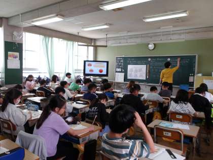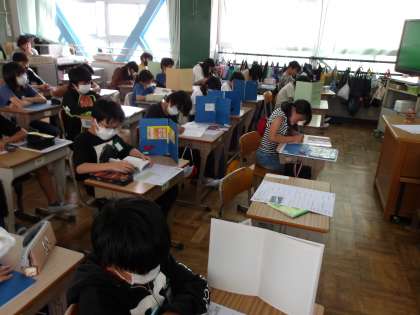 今日の5年生の様子です。テストをしたり、算数の「合同な図形」の学習をしていました。