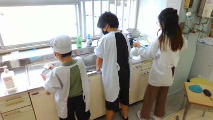 おいしくいただいていました。そのあとの片付けも協力して、進めることができました。