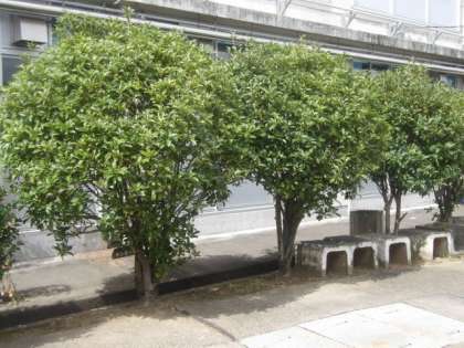 ソテツの横あたりから、校舎に沿って育っている木はなんでしょうか。