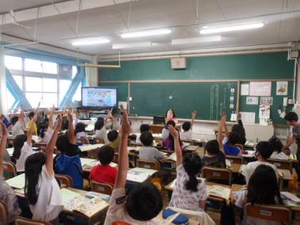 教科書の挿絵から、きまりを守れていないところを見つけて発表しました。