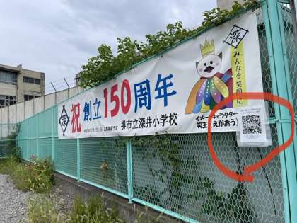 最近、そこにに、QRコードを貼っています。赤丸です?