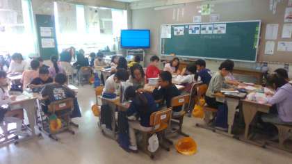本日は各チームで調べたことを、もとの班のお友達に教え合いをしました。