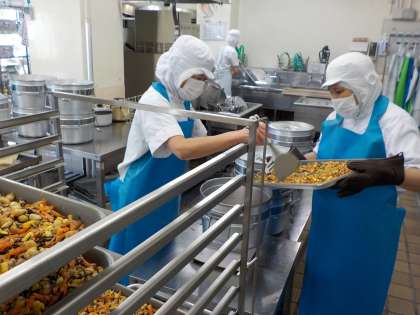 今日の献立は『ごはん(増量)・牛乳・給食番長のカレーライス・給食番長のひじきサラダ』でした。絵本の「給食番長」にちなんだ読書週間に合わせた献立です。調理員さんがおいしく作りました。