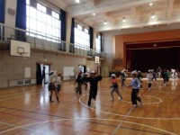 1年生70名が入学し、2〜3年生と初めて顔を合わせる対面式が行われました。6年生が、体育館まで手をつないで連れて行ってくれます。