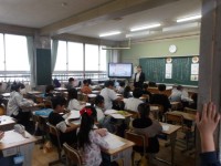 理科では、ヘチマの子葉の観察をしています。ヘチマは、種をまいて育てています。