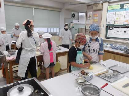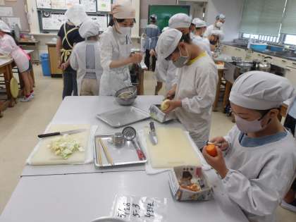 調理実習では、ゆでる調理「ゆで野菜」に取り組んでいます。