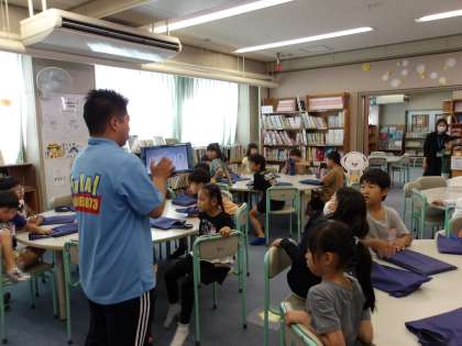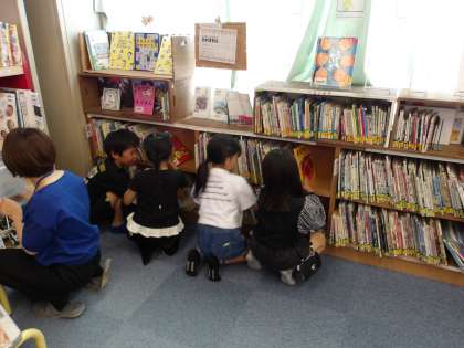 2年生の図書学習では、本を読んだ後、本棚の整理を手伝っています。