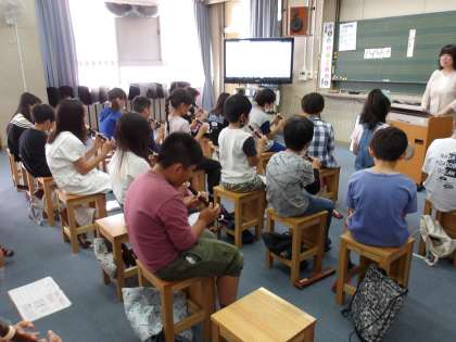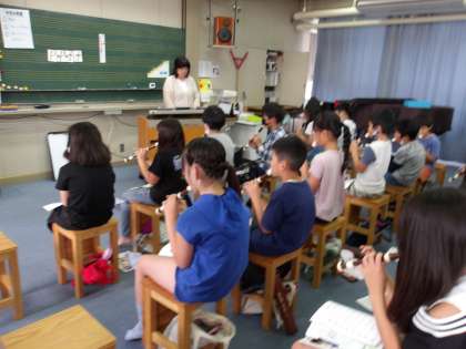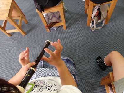 音楽では、「風のメロディ」を、リコーダーと歌声の響きを合わせて演奏します。