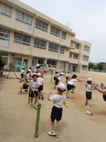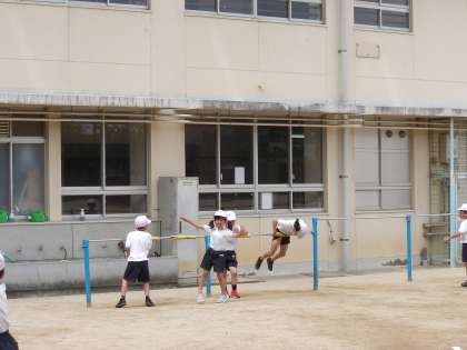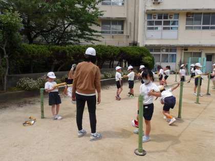 体育では、鉄棒運動の学習をしています。片足上がりの練習です。