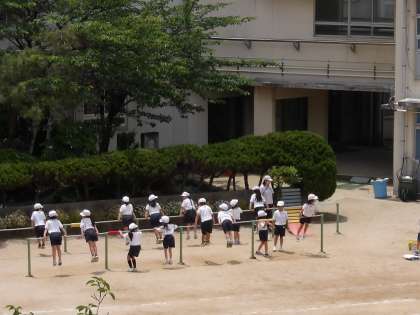 鉄棒運動の学習をしています。授業の時間だけでなく、休み時間も使ってよく練習をしているので、上達しています。