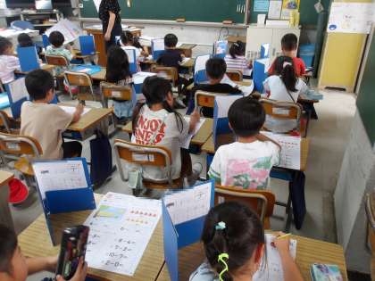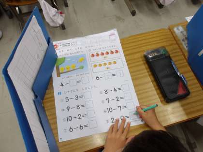 算数「のこりはいくつ ちがいはいくつ」の単元テストが行われています。