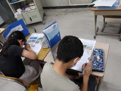 社会「さまざまな土地のくらし」の単元テストが行われています。
