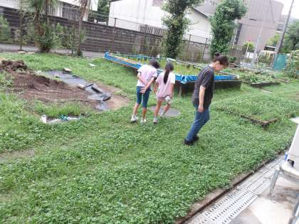 クワガタムシを育てるために、木を探しているようです。