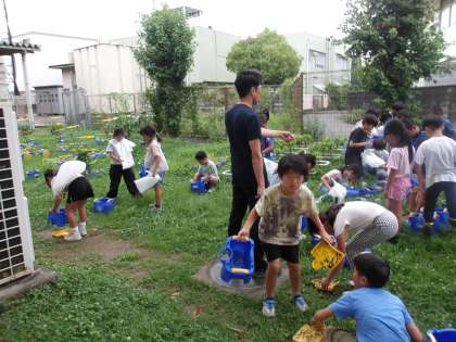 ホウセンカやヒマワリを育てた植木鉢を、今日持ち帰ります。