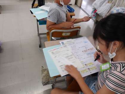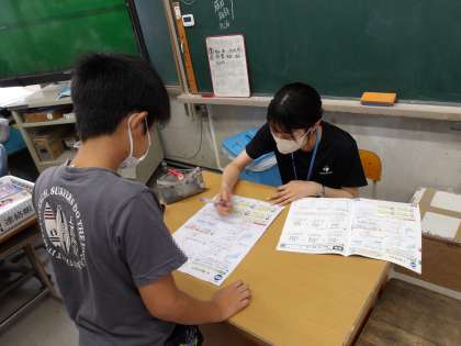 算数「角の大きさ」のテストが返却され、間違ったところを復習しています。