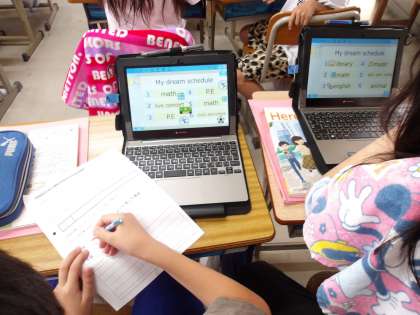 英語では、「My dream schdule」の原稿を仕上げています。出来上がったら、声と目線に気を付けて発表をします。