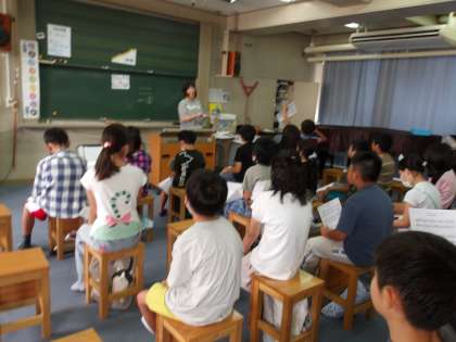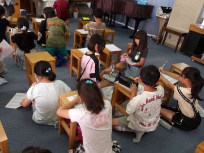 音楽では、夏休みのリコーダーの宿題について、説明が行われています。