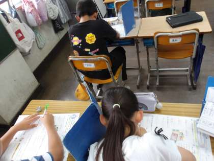 国語「みんなが使いやすいデザイン」の単元テストが行われています。