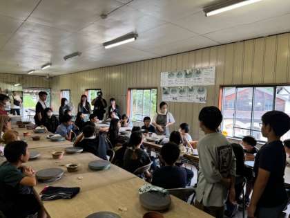 昔の琵琶湖の粘土を使って作ります。薬をかけずに1500度の炎だけで焼き上げた色に仕上がります。作った時より2まわり小さく出来上がります。