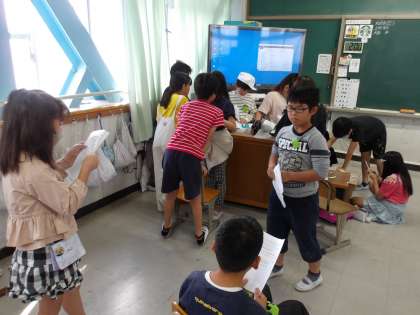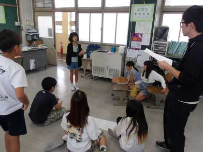 こちらでは、劇の練習です。イメージしたことを動きに表す練習です。