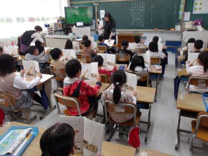 国語「じどう車くらべ」の音読をしています。