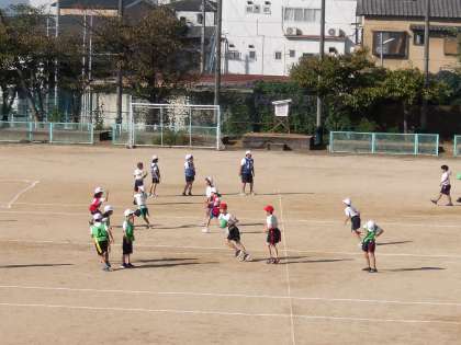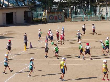 体育絵は、タグポートボールが行われています。複雑なルールも、きちんと理解してチームで戦います。