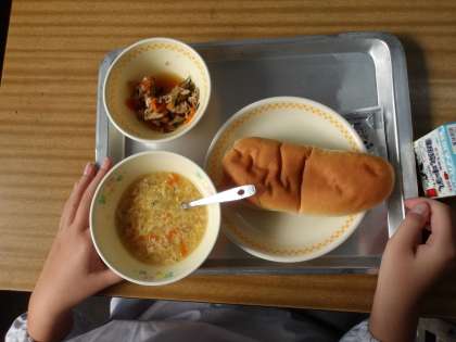 今日の献立にある「大豆クリーム」は、黒大豆からつくられた黄な粉を使っています。黄な粉は、炒った大豆w粉末状にして作ります。香ばしく良質のたんぱく質やビタミンB群が豊富です。パンにつけていただきましょう。