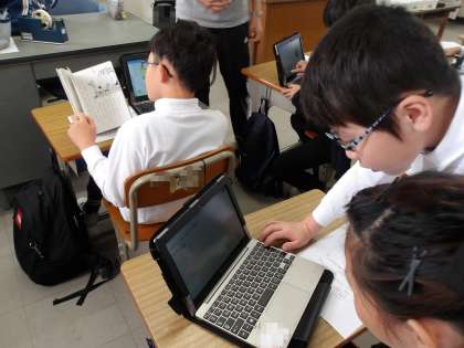 国語「短歌・俳句にしたしもう」では、俳句を作って、タブレットに書き込み、どのように感じて作ったのかを伝えてみんなで共有します。