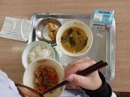 今日は、2学期最後の給食です。調理員さん、いつもおいしい給食をありがとうございました。