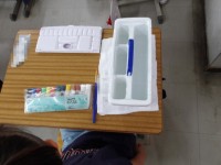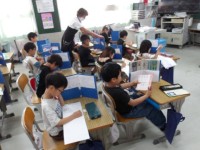 図工では,絵の具の使い方を学習しています。始める前に,道具の置き場や絵の具の...