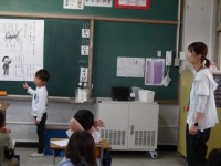 国語では,しらせたいものの絵と,見つけたことを発表しています。たくさんの手があが...