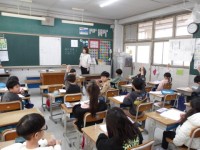 漢字の学習をしています。先生が,間違いやすいところを説明をしています。
