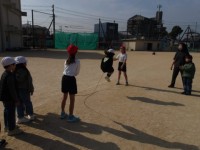 3年生が大なわを教えにきてくれました。大波小波や郵便屋さんを一緒にしました。3年...