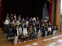 連合音楽会の練習に力が入ります。元気な歌声が体育館の外まで響きます。