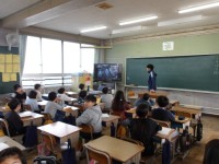 図工では,版画を制作します。海の生き物を大きく描いて回りの表現します。彫刻刀も使...