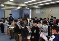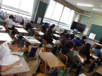 自作の漢字テストをしています。自分たち...