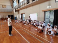 リンボーダンスをしています。自分の記録を更新することをめあてに活動する中で,柔軟...