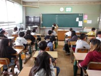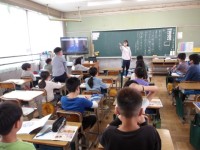 高学年英語の授業では,深井西小学校の外国語担当の先生と学びます。今日は,先生が問...
