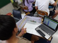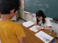 算数の学習で今日は校舎の高さを調べています。縮図や拡大について学習したので,その...