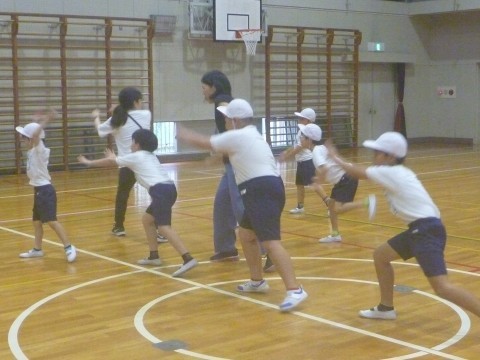 初めて体操をする1年生,久しぶりにやる2年生以上の児童もいましたが,しっかり練習に取り組みました。