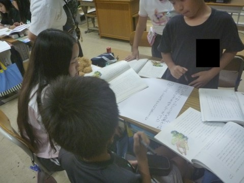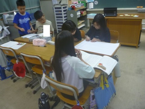 今日は,班でそれぞれの場面を「要約」しました。