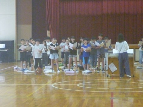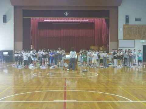 本番に向けての心構えや,スケジュール等について学年で共有し,体育館の響きを確かめながら,練習を始めました。