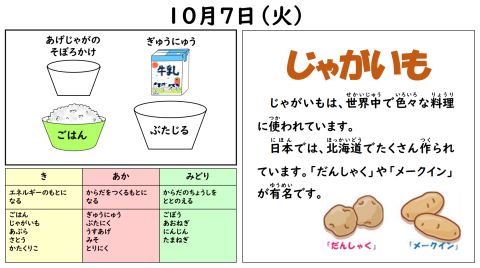 今日の給食 10月7日(火)