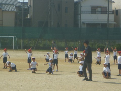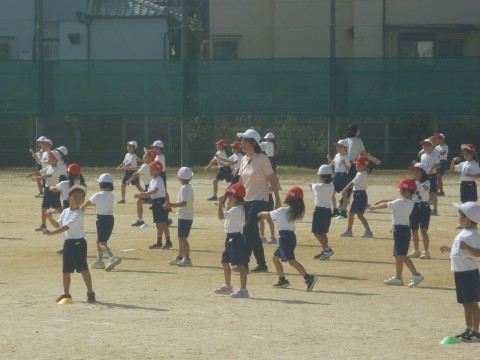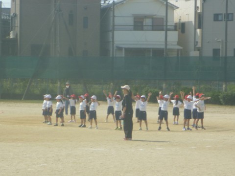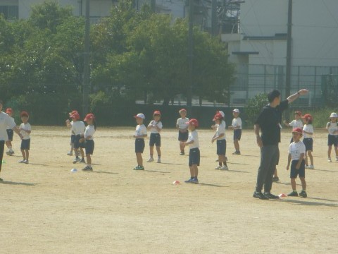 今週も外に出て,隊形移動の場所を確認しながらの練習です。