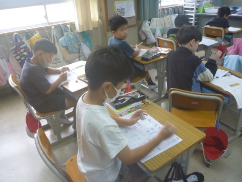 集中して心を落ち着けて「硬筆」の練習に取り組んでいます。