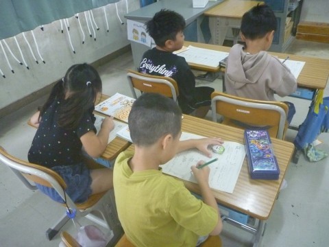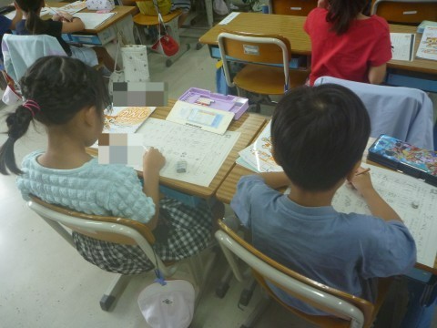 カタカナの書き取りや,文章問題を解く練習を行っています。