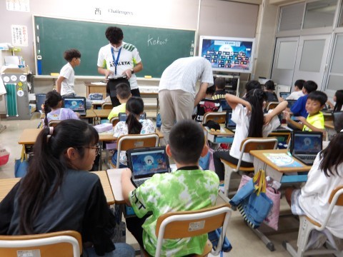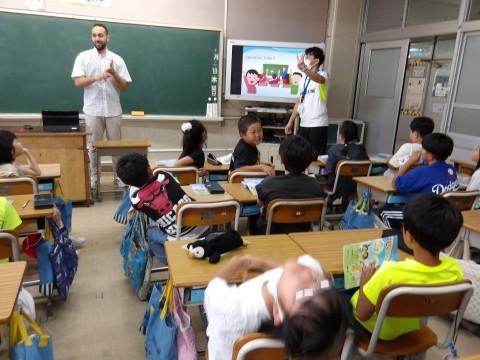 NSのマラワーン先生の自己紹介と好きなスポーツ,アニメ,食べ物等を英語聞く練習をしました。