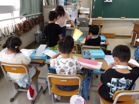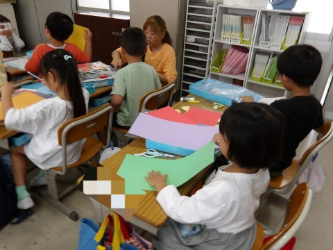 デザイン画を参考にしながら,創作活動を進めました。どんな冠ができあがるか楽しみですね。