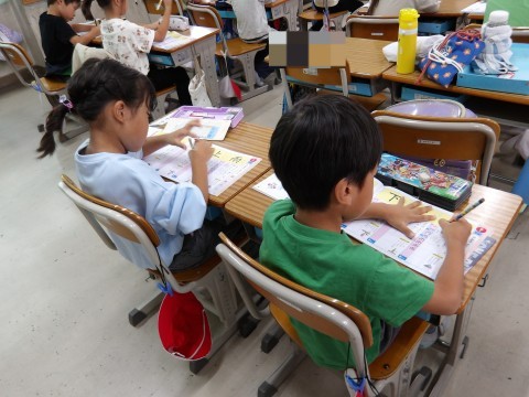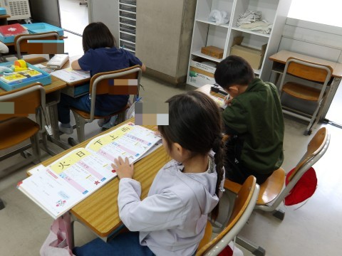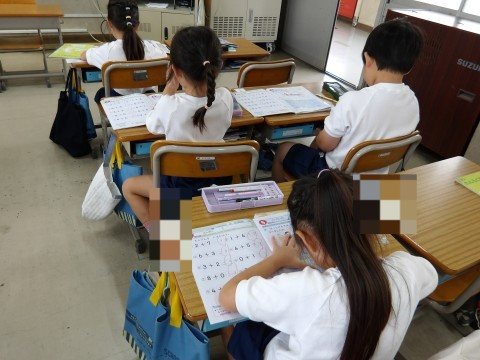 「繰り上がりのあるたし算」の復習,新出漢字の練習を行いました。
