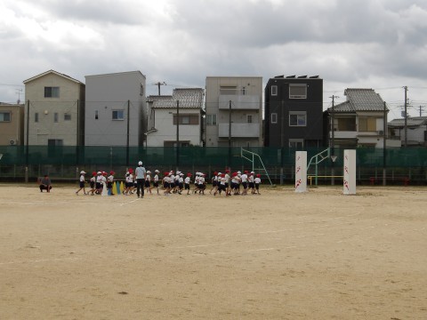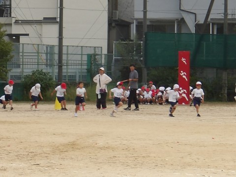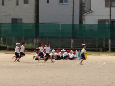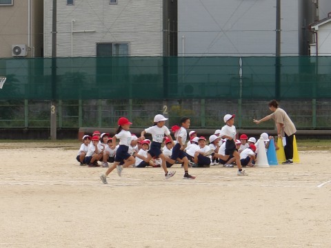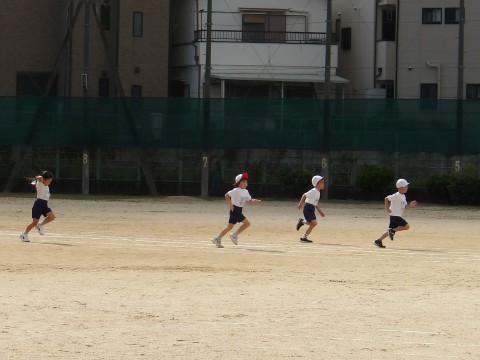 徒競走の練習を行いました。1・2年生は,50mを走り切ります。